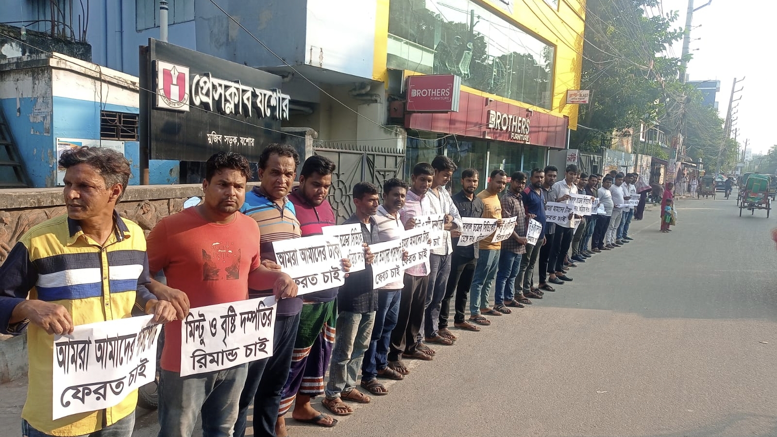 যশোরে নিউ আরকে ট্রেডিংয়ের বিরুদ্ধে প্রতারণার অভিযোগে মানববন্ধন