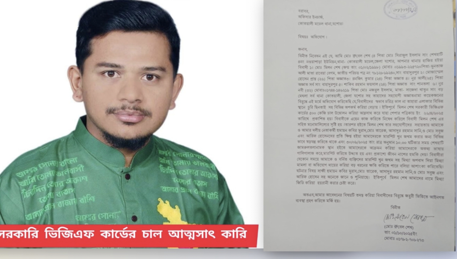 যশোর অফিস যশোর সদর উপজেলার বাহাদুরপুরে সরকারি ভিজিএফ কার্ডের ৫০০ কেজি চাল আত্মসাতের অভিযোগ উঠেছে মিলন শেখ নামের এক ব্যক্তির