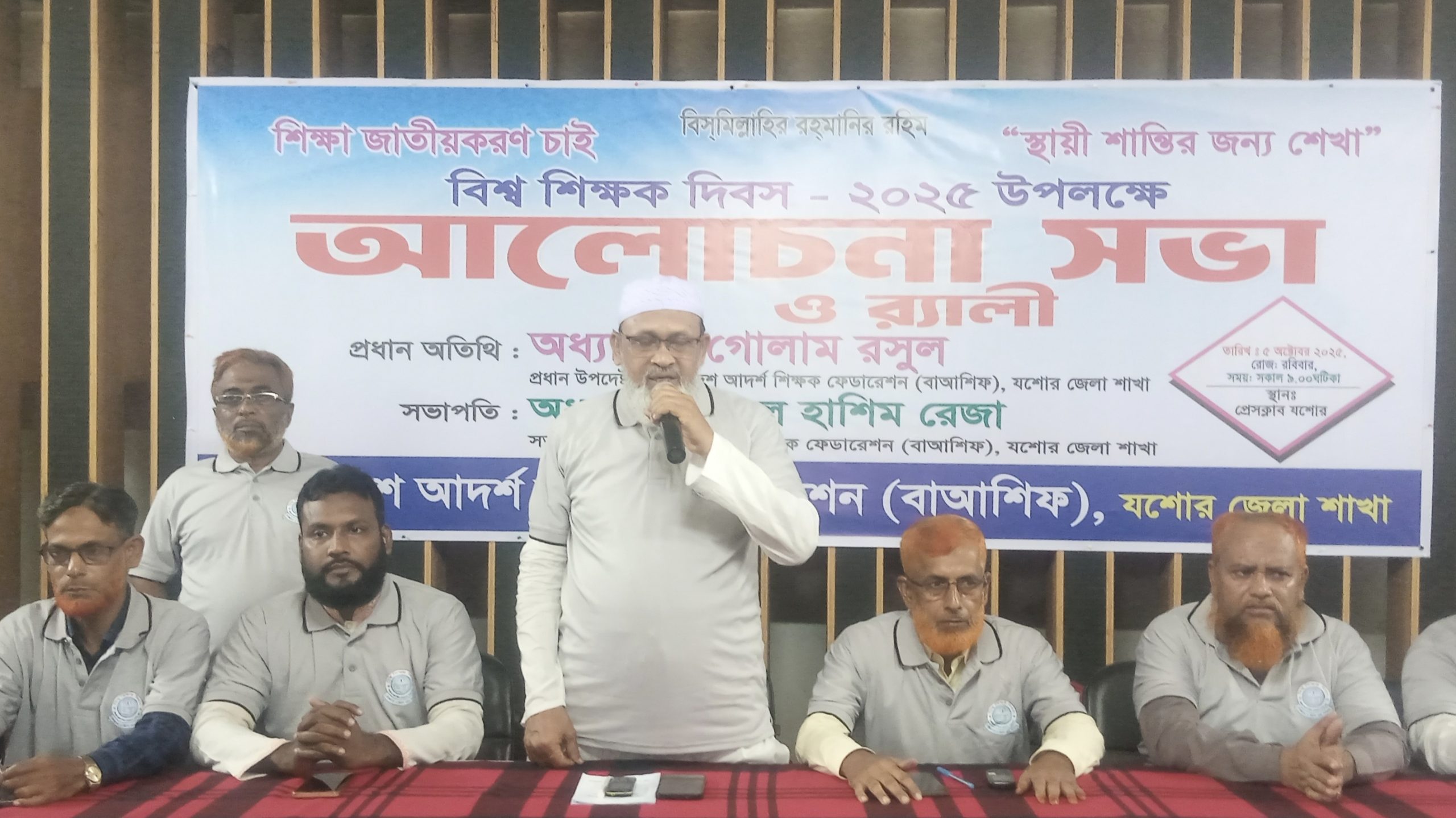 যশোর অফিস বিশ্ব শিক্ষক দিবস উপলক্ষে প্রেসক্লাব যশোর অডিটোরিয়ামে বাংলাদেশ আদর্শ শিক্ষক ফেডারেশনের উদ্যোগে আলোচনা সভা ও র্যালি অনুষ্ঠিত হয়েছে।