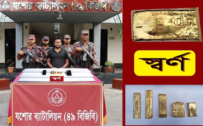 যশোর অফিস যশোরের ১৮ সেপ্টেম্বর বর্ডার গার্ড বাংলাদেশ (বিজিবি) যশোর ব্যাটালিয়ন (৪৯ বিজিবি) অভিযান চালিয়ে কোটি টাকা মূল্যের পাঁচটি স্বর্ণের