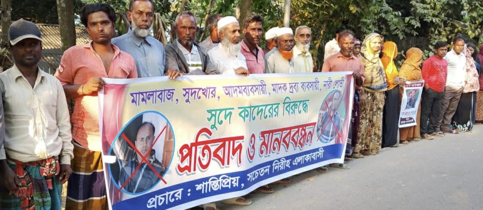 রাজগঞ্জে বহু অপকর্মের হোতা কাদেরের বিচার দাবিতে মানববন্ধন