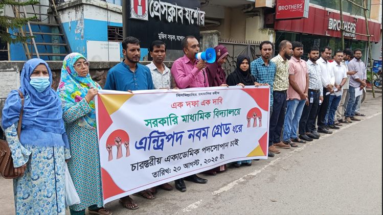 যশোর অফিস সরকারি মাধ্যমিক বিদ্যালয়ে এন্ট্রিপদ ৯ম গ্রেড ধরে চারস্তরীয় একাডেমিক পদসোপান চাই” এই এক দফা দাবিকে সামনে রেখে যশোরে