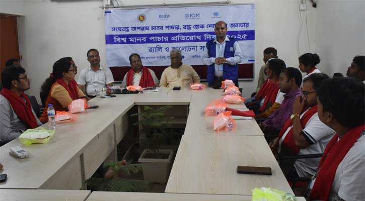 যশোর অফিস বিশ্ব মানব পাচার প্রতিরোধ দিবস উপলক্ষে আয়োজিত অনুষ্ঠানমালায় বক্তারা বলেছেন, মানব পাচারকারীরা সংখ্যায় কম হলেও সংগঠিত। পক্ষান্তরে সাধারণ