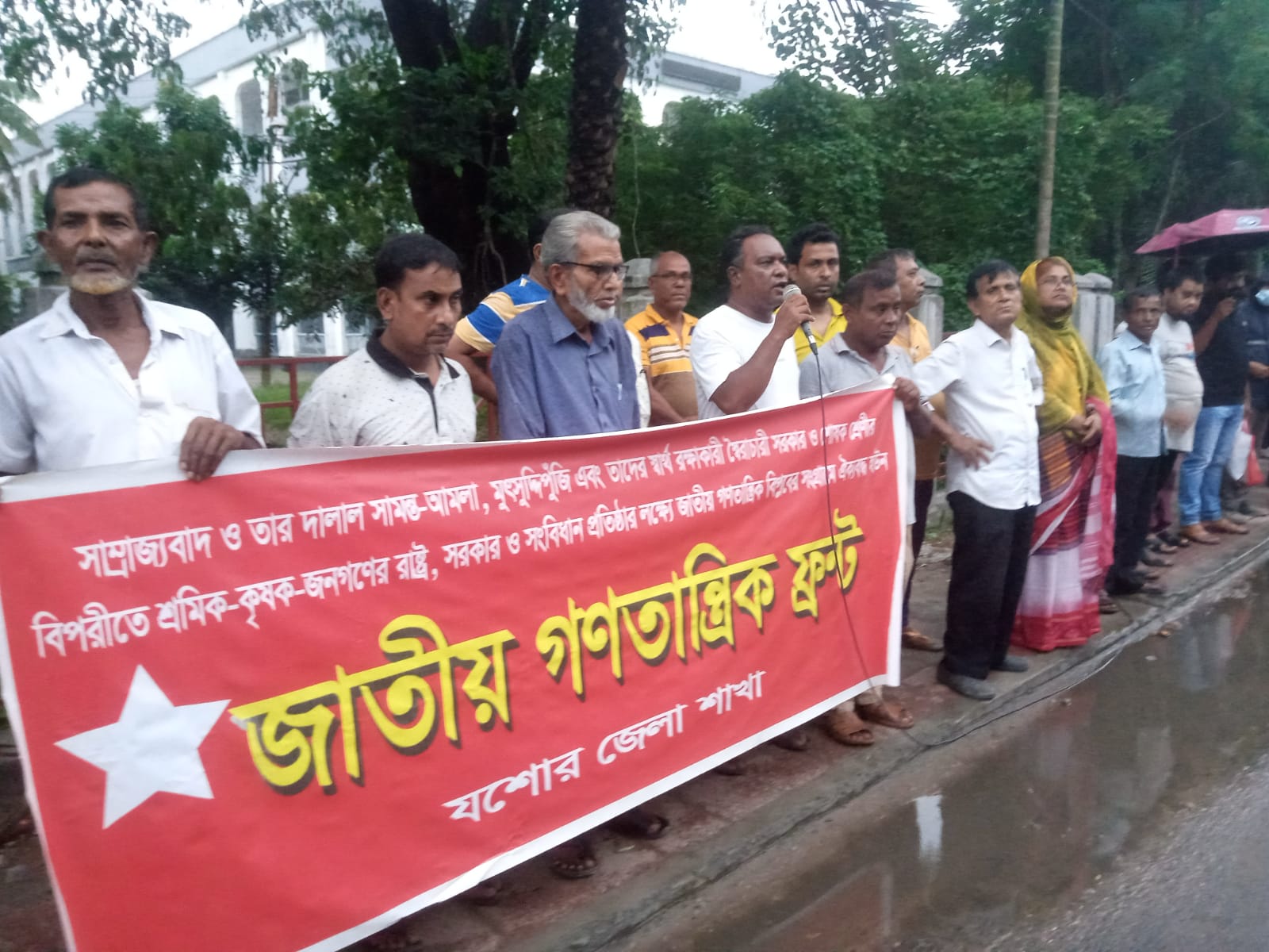 যশোর অফিস সাম্রাজ্যবাদ,দালাল আমলাতন্ত্র ও শোষণমূলক ব্যবস্থার বিরুদ্ধে প্রতিবাদ এবং শ্রমিক-কৃষক-জনগণের রাষ্ট্র গঠনের দাবিতে যশোরে মানববন্ধন কর্মসূচি পালন করেছে জাতীয়
