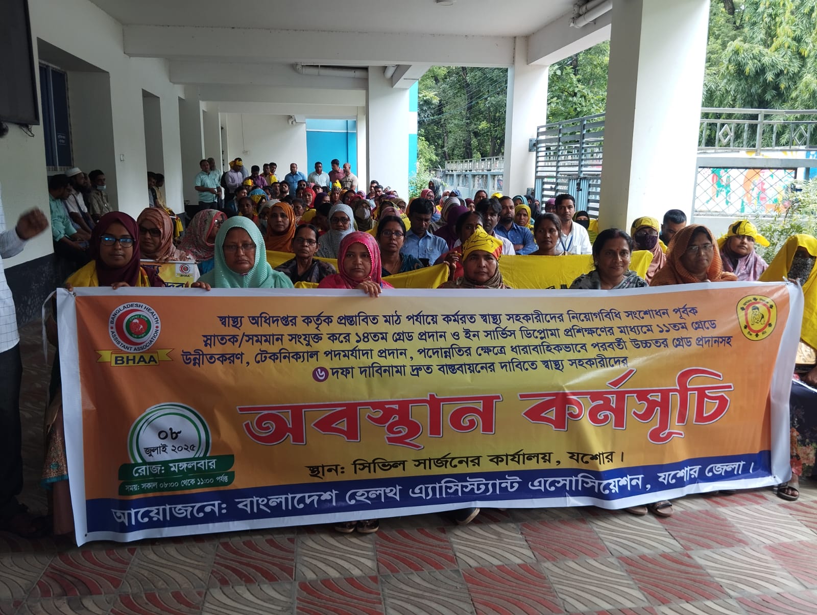 যশোরে ৬ দফা দাবিতে স্বাস্থ্য সহকারীদের অবস্থান কর্মসূচি