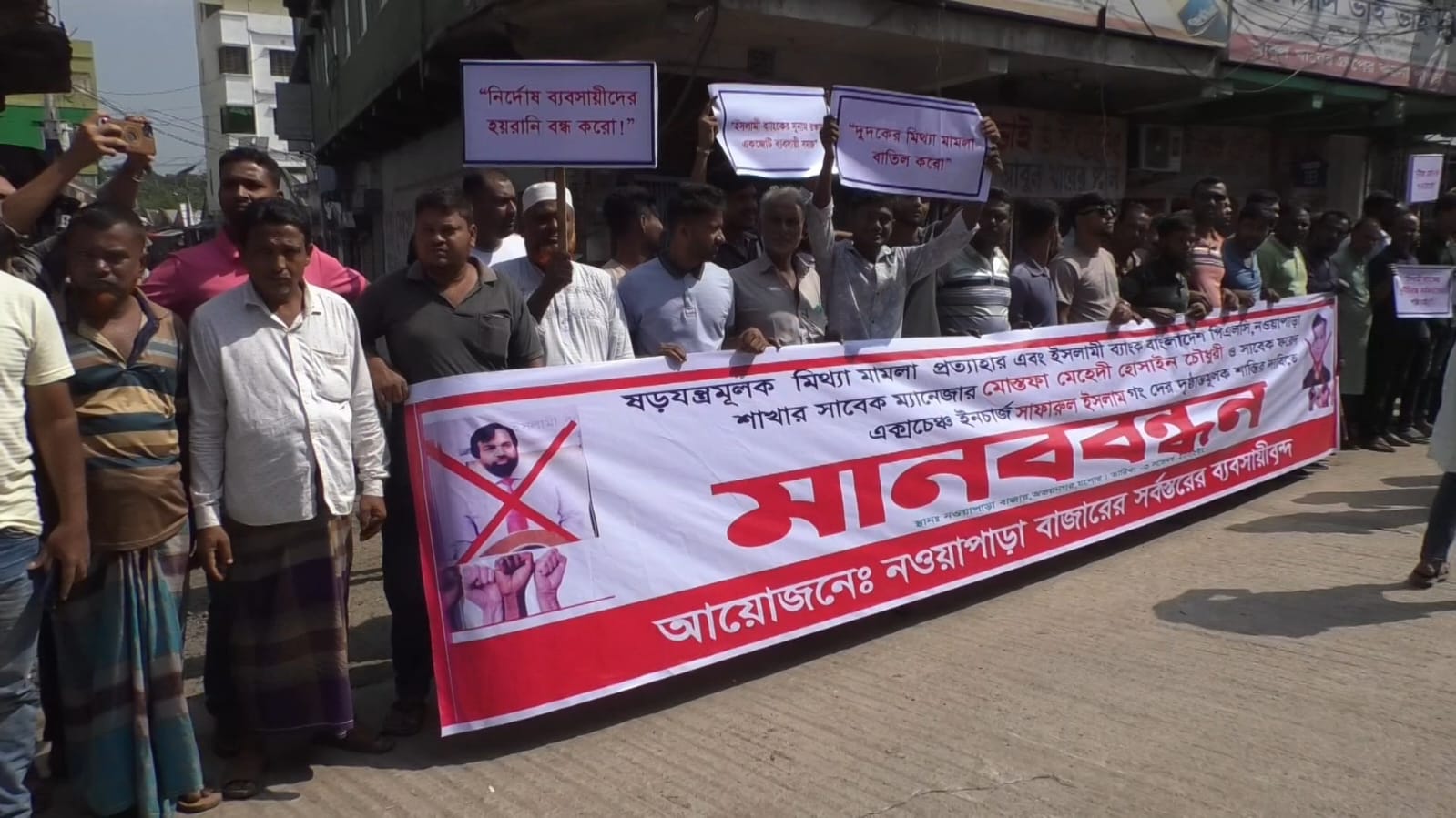 যশোরে ব্যবসায়ীদের নামে মিথ্যা মামলা প্রত্যাহারের দাবীতে মানববন্ধন