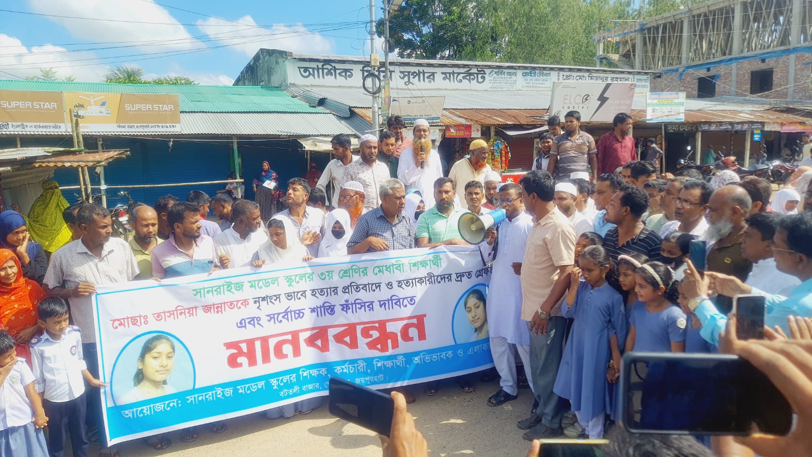 ক্ষেতলালে তাসমিয়া হত্যার প্রতিবাদে মানববন্ধন