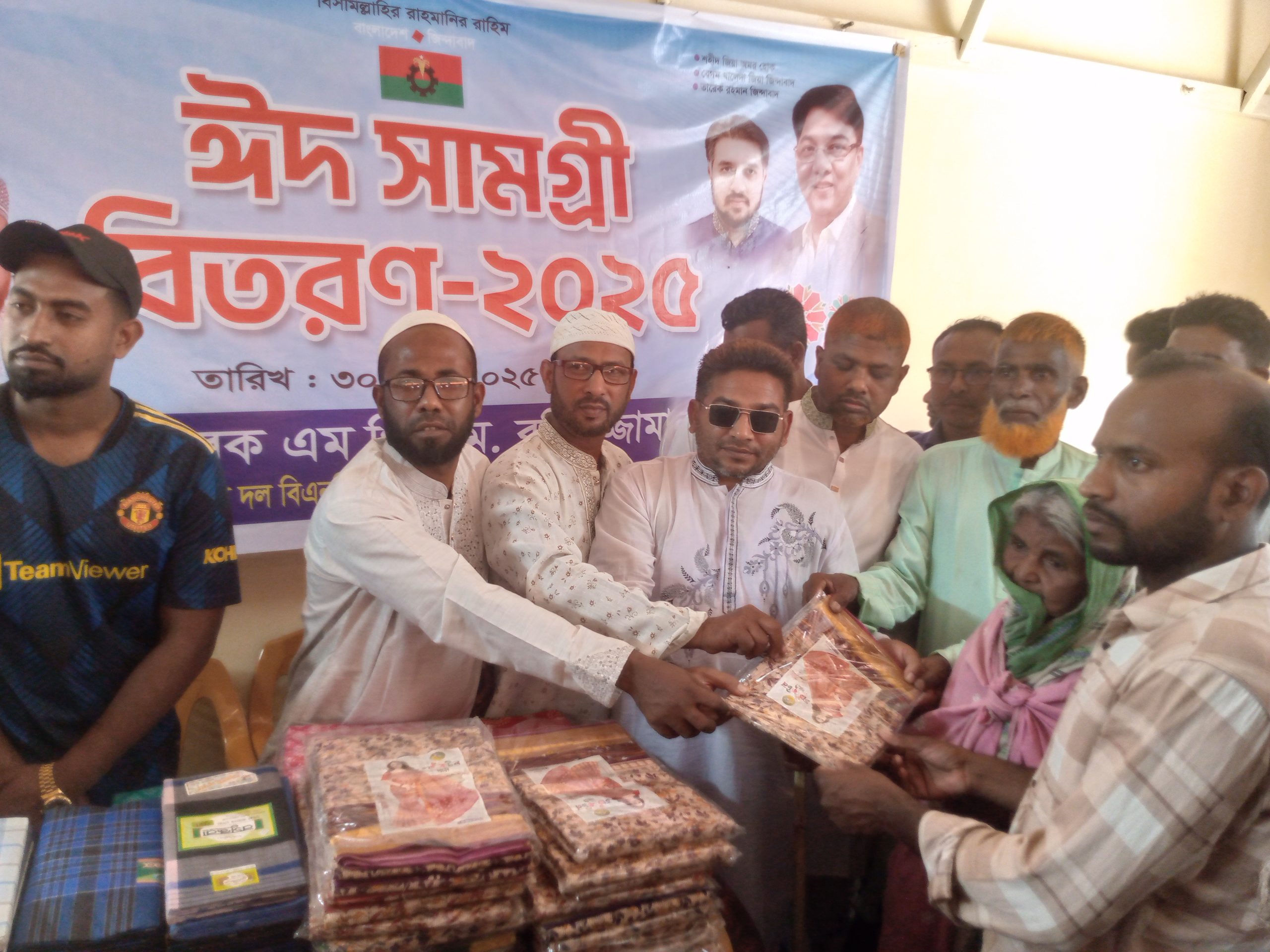 সাধুরপাড়ায় সাবেক এমপির পক্ষে শাড়ি-লুঙ্গি বিতরণ