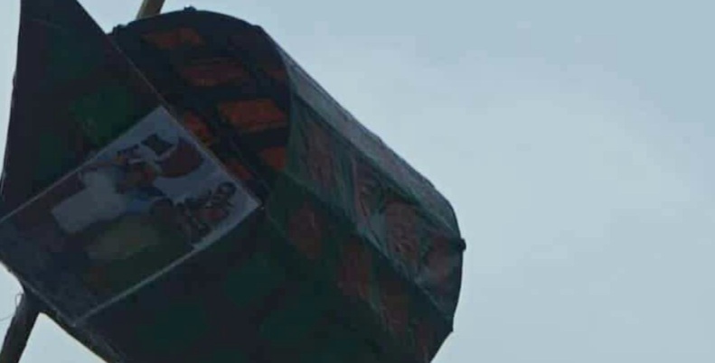 ভূরুঙ্গামারীতে আ. লীগ নেতাকর্মীরা নৌকা বানিয়ে ঝুলিয়ে দিলেন রাস্তায়