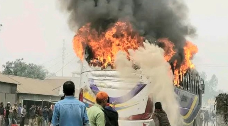 ভূরুঙ্গামারীতে দাঁড়িয়ে থাকা বাসে আগুন