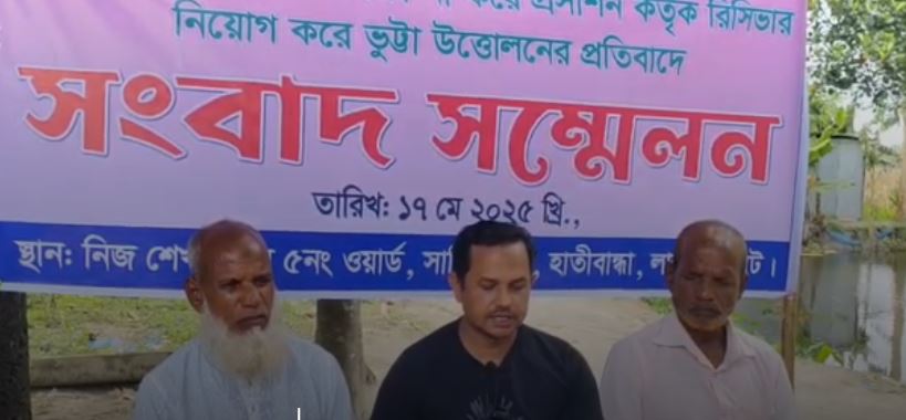 লালমনিরহাট, জেলা প্রতিনিধি লালমনিরহাটের হাতীবান্ধায় আদালতের রায়ের জন্য অপেক্ষা না করে উপজেলা প্রশাসনকে ভুলতথ্য দিয়ে রিসিভার নিয়োগের প্রতিবাদে সংবাদ সম্মেলনে