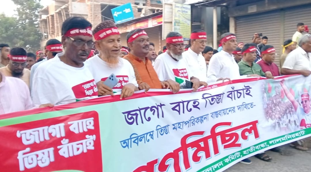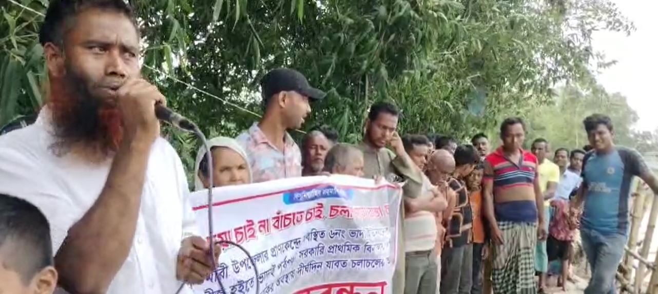 লালমনিরহাটের আদিতমারীতে সড়ক রক্ষার দাবিতে মানববন্ধন