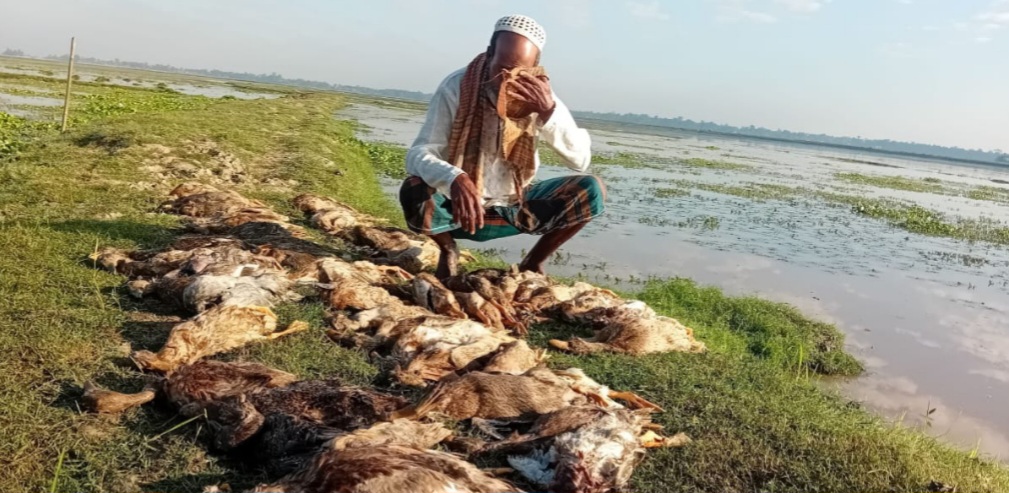 জুড়ীতে বিষমিশ্রিত ধান খেয়ে মারা গেছে ৩৩৫টি হাঁস, খামারির মাথায় হাত