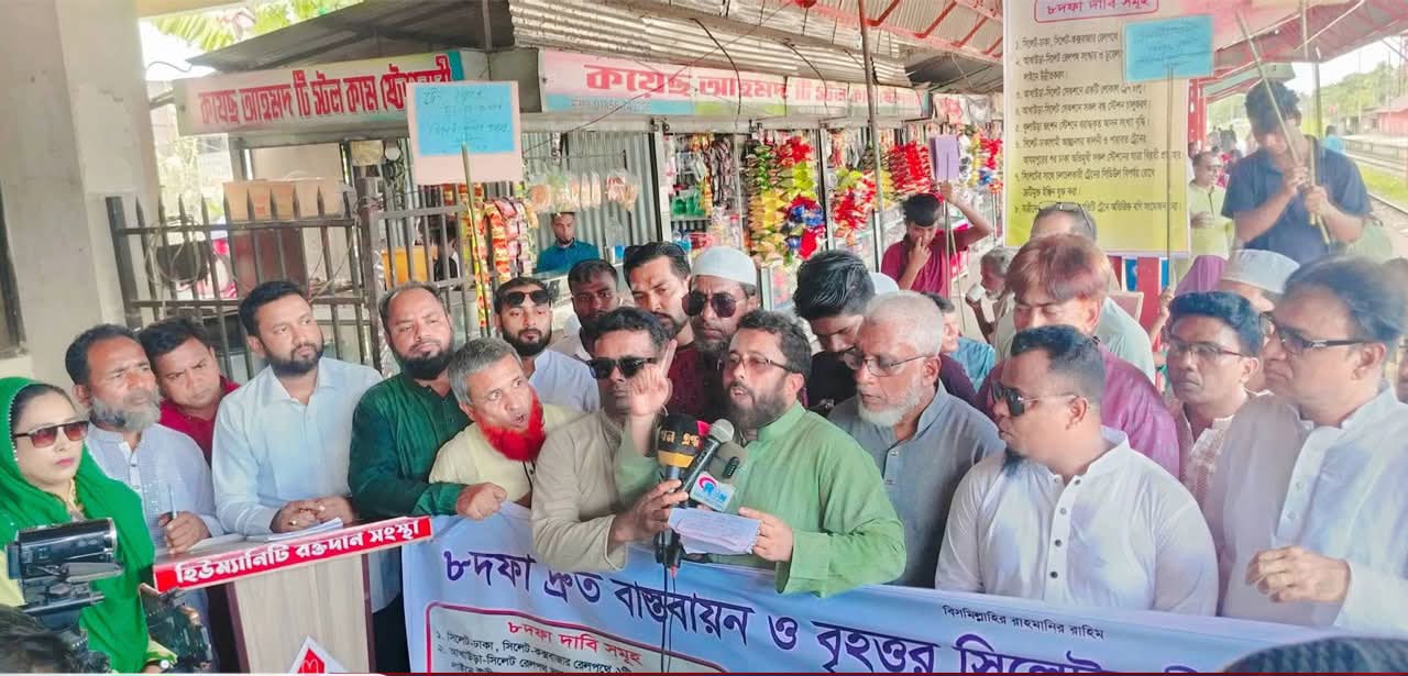 বৃহত্তর সিলেটবাসীদের প্রতি রেলওয়ের বৈষম্যের প্রতিবাদে ৮ দফা দাবিতে প্রতিবাদ