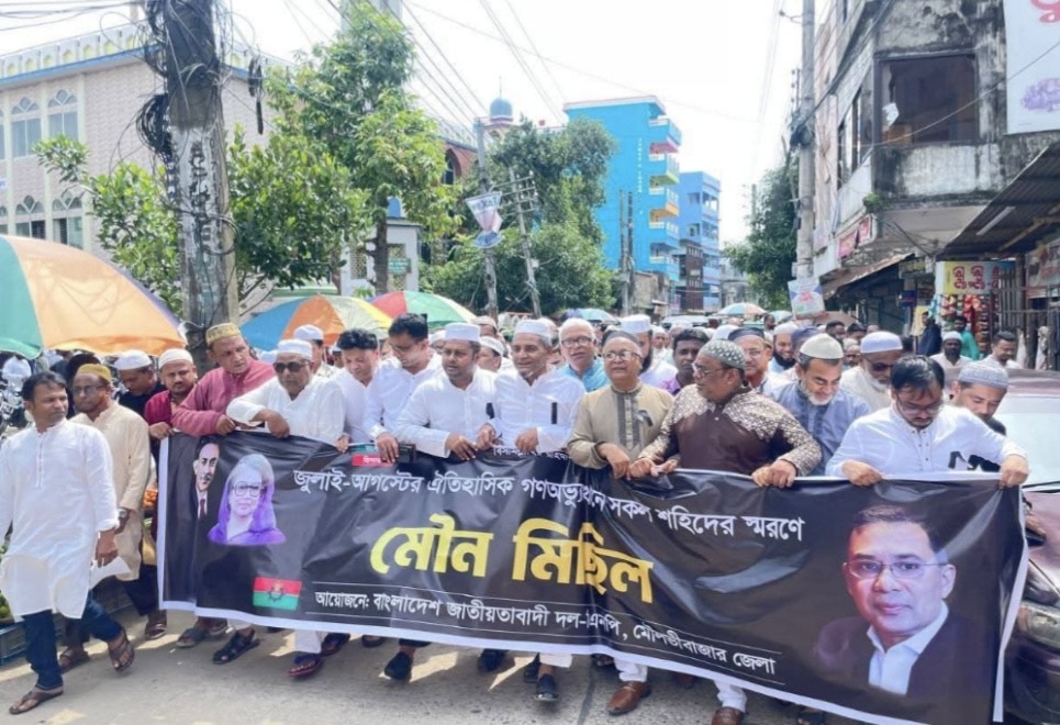 মৌলভীবাজারে শহিদদের স্মরণে জেলা বিএনপির মৌণ মিছিল
