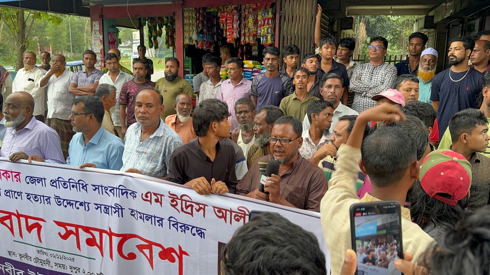 সাংবাদিকের ওপর হামলার প্রতিবাদে সমাবেশ ও মানববন্ধন
