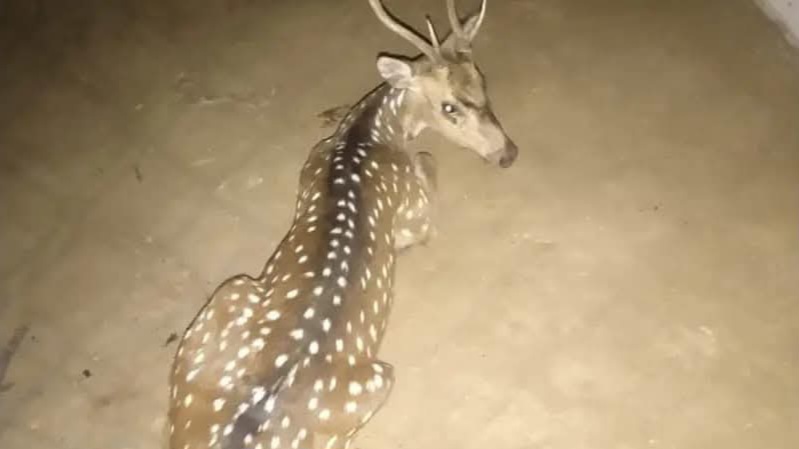 লাউয়াছড়া বন থেকে বেরিয়ে লোকালয়ে “চিত্রা হরিণ”