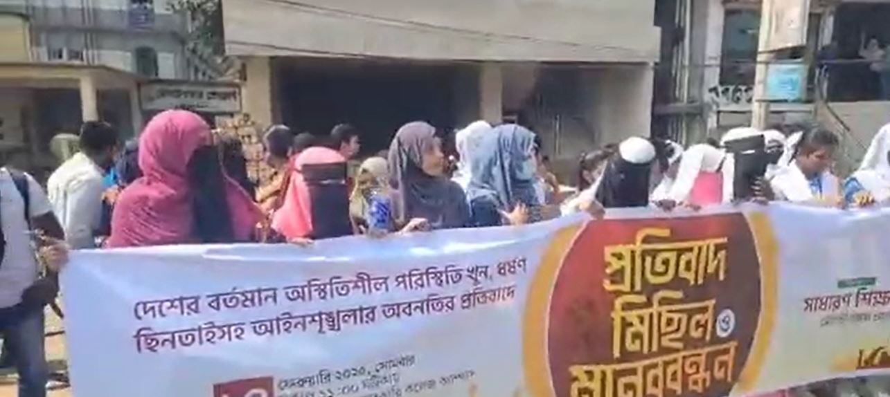 খুন,ধর্ষণ,ছিনতাইসহ আইনশৃঙ্খলা অবনতির প্রতিবাদে বিক্ষোভ মৌলভীবাজারে