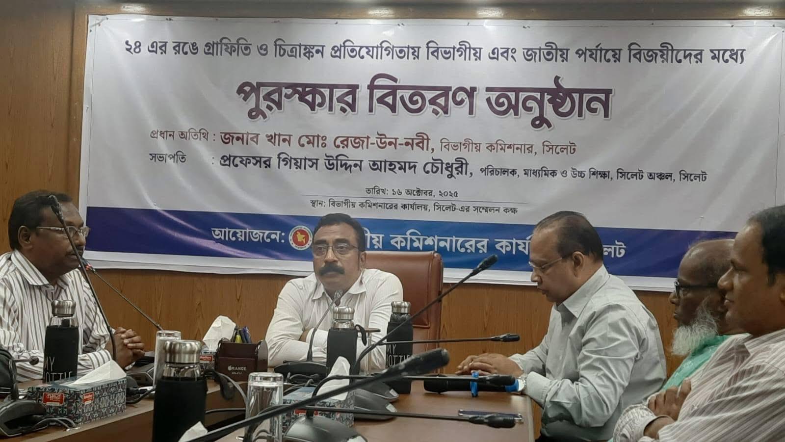 তিমির বনিক,মৌলভীবাজার প্রতিনিধি: ২৪ ছাত্র জনতার গন অভ্যুত্থানের রঙে রঞ্জিত গ্রাফিতি ও চিত্রাংকন ❞ প্রতিযোগিতায় মৌলভীবাজারের শ্রীমঙ্গলের দি বার্ডস রেসিডেনসিয়াল