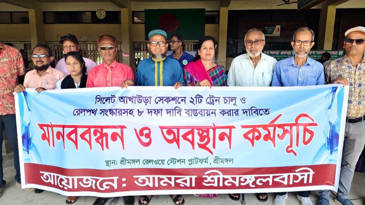 শ্রীমঙ্গলে রেলপথের ৮ দফা দাবি আদায়ে মানববন্ধন ও অবস্থান কর্মসূচি