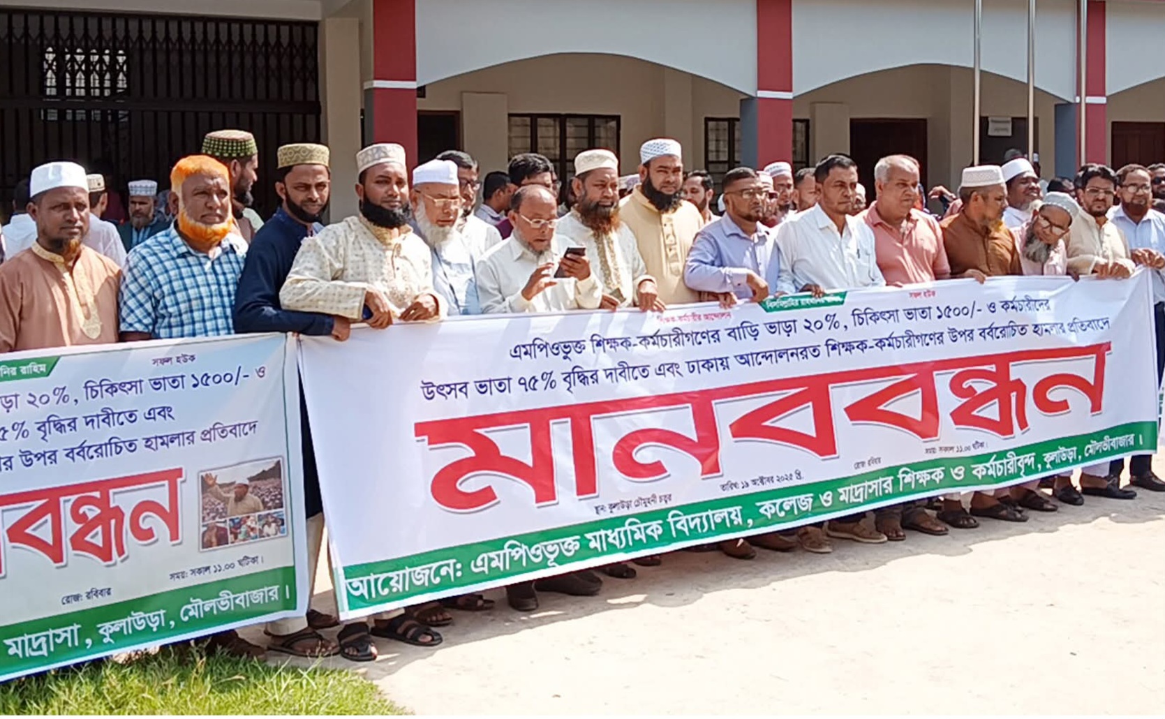 কুলাউড়ায় এমপিওভুক্ত শিক্ষক-কর্মচারীদের বিশাল মানববন্ধন