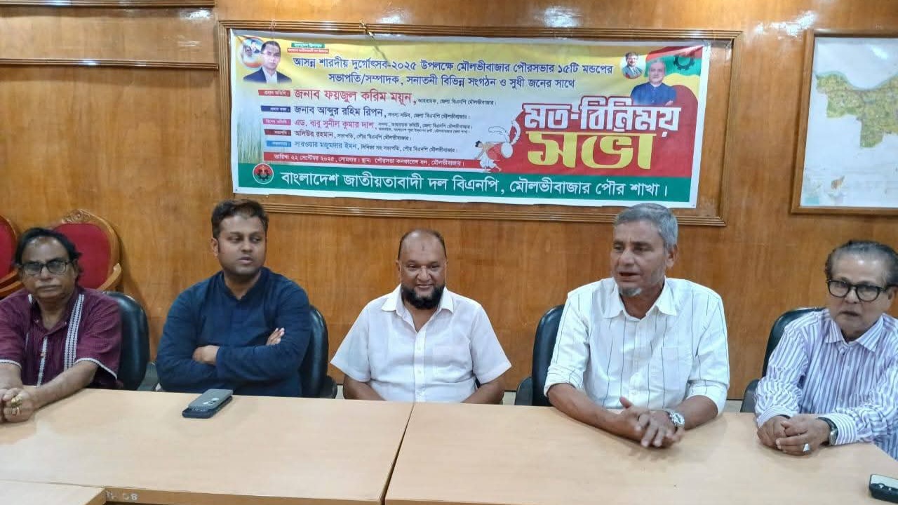 মৌলভীবাজারে দুর্গোৎসব উপলক্ষে পৌর বিএনপি’র মতবিনিময় সভা