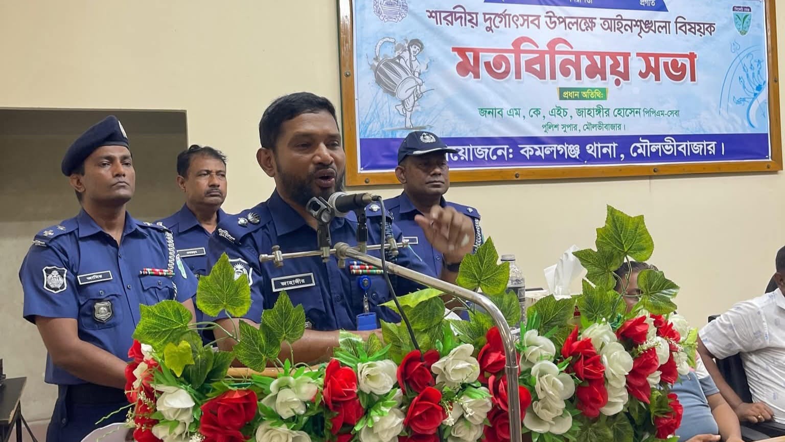 কমলগঞ্জে দুর্গাপূজা উপলক্ষে আইনশৃঙ্খলা বিষয়ক মতবিনিময় সভা