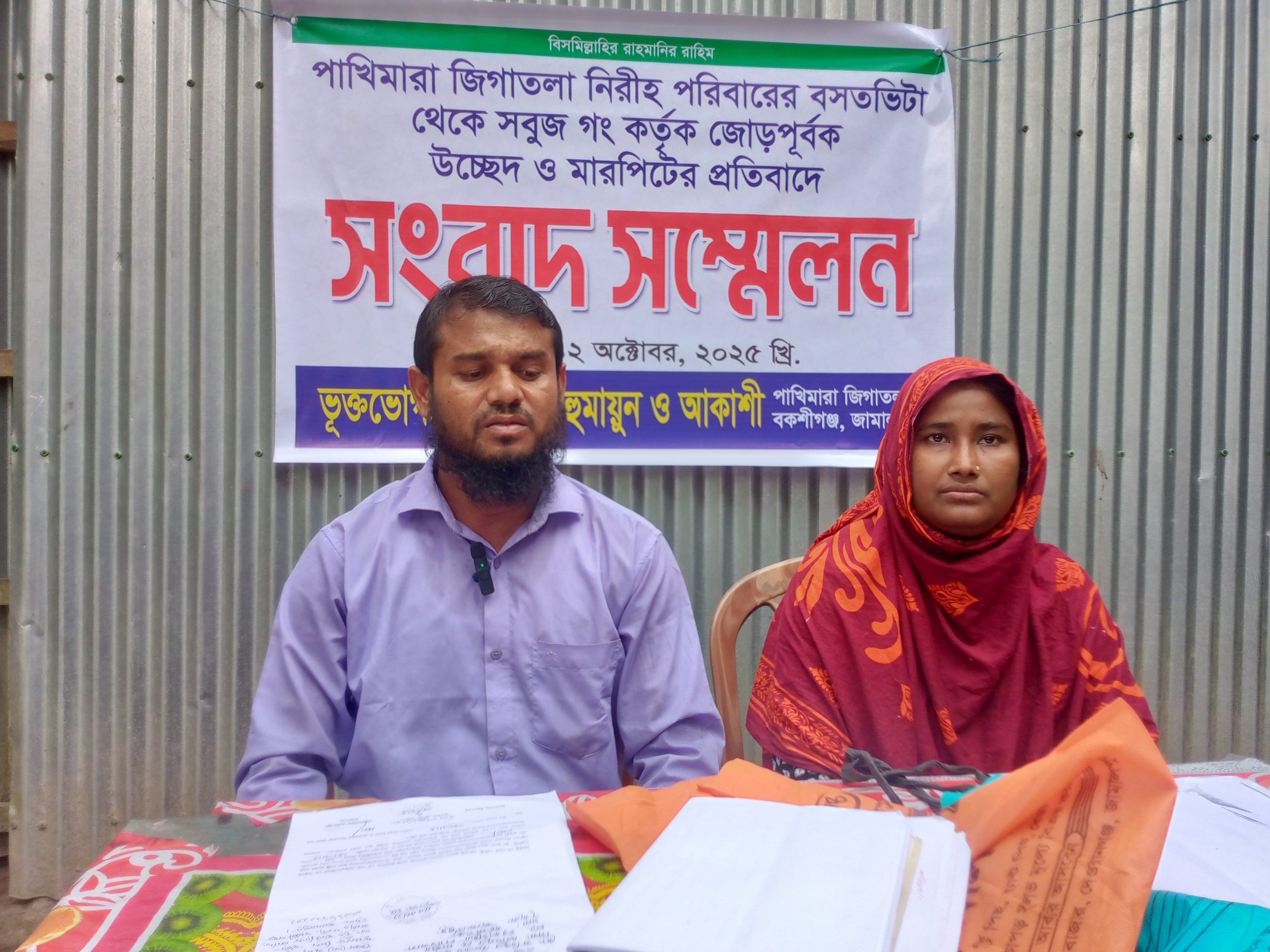 বকশীগঞ্জে বসতভিটা থেকে জোরপূর্বক উচ্ছেদের চেষ্টা ও মারধরের প্রতিবাদে সংবাদ সম্মেলন