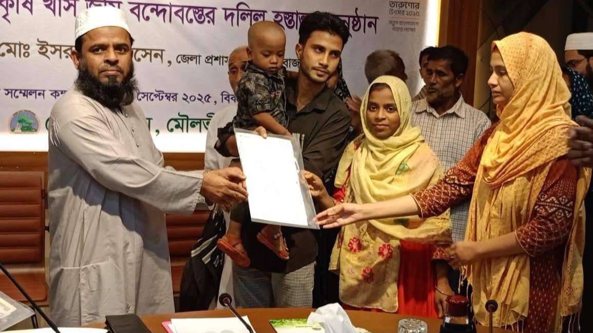 তিমির বনিক, মৌলভীবাজার প্রতিনিধি: মৌলভীবাজার জেলার কৃষি খাস জমি বন্দোবস্তের ৬৭টি দলিল ভূমিহীনদের মাঝে হস্তান্তর করা হয়েছে। রোববার (১৪ই সেপ্টেম্বর)