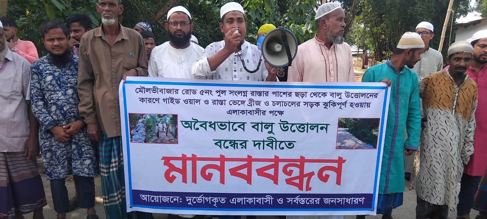 শ্রীমঙ্গলে ছড়ার ইজারা বাতিলের দাবীতে মানববন্ধন