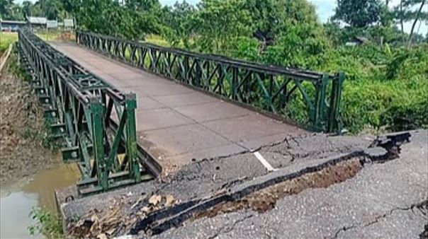 তিমির বনিক,মৌলভীবাজার প্রতিনিধি: মৌলভীবাজার জেলার জুড়ী উপজেলার বটুলি সীমান্তে অবস্থিত বেইলি সেতু ধসে পড়েছে। রবিবার (৭ই সেপ্টেম্বর) রাতের প্রবল বর্ষণ
