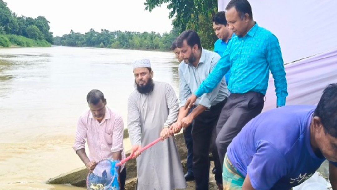 মনু নদীতে পোনা মাছ অবমুক্ত; জেলা প্রশাসক