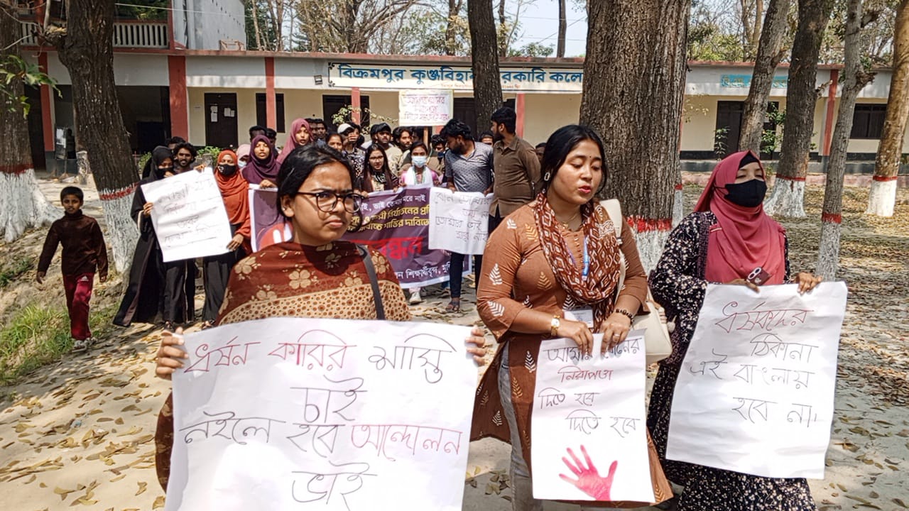 দেশব্যাপী ধর্ষণ-খুন ও নারী নির্যাতনের প্রতিবাদে দাবিতে সিরাজদিখানে শিক্ষার্থীদের মানববন্ধন