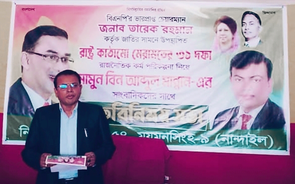 নান্দাইলে বিএনপির ৩১ দফা রাজনৈতিক পরিকল্পনা নিয়ে মামুনের সাংবাদিকদের সাথে মতবিনিময়