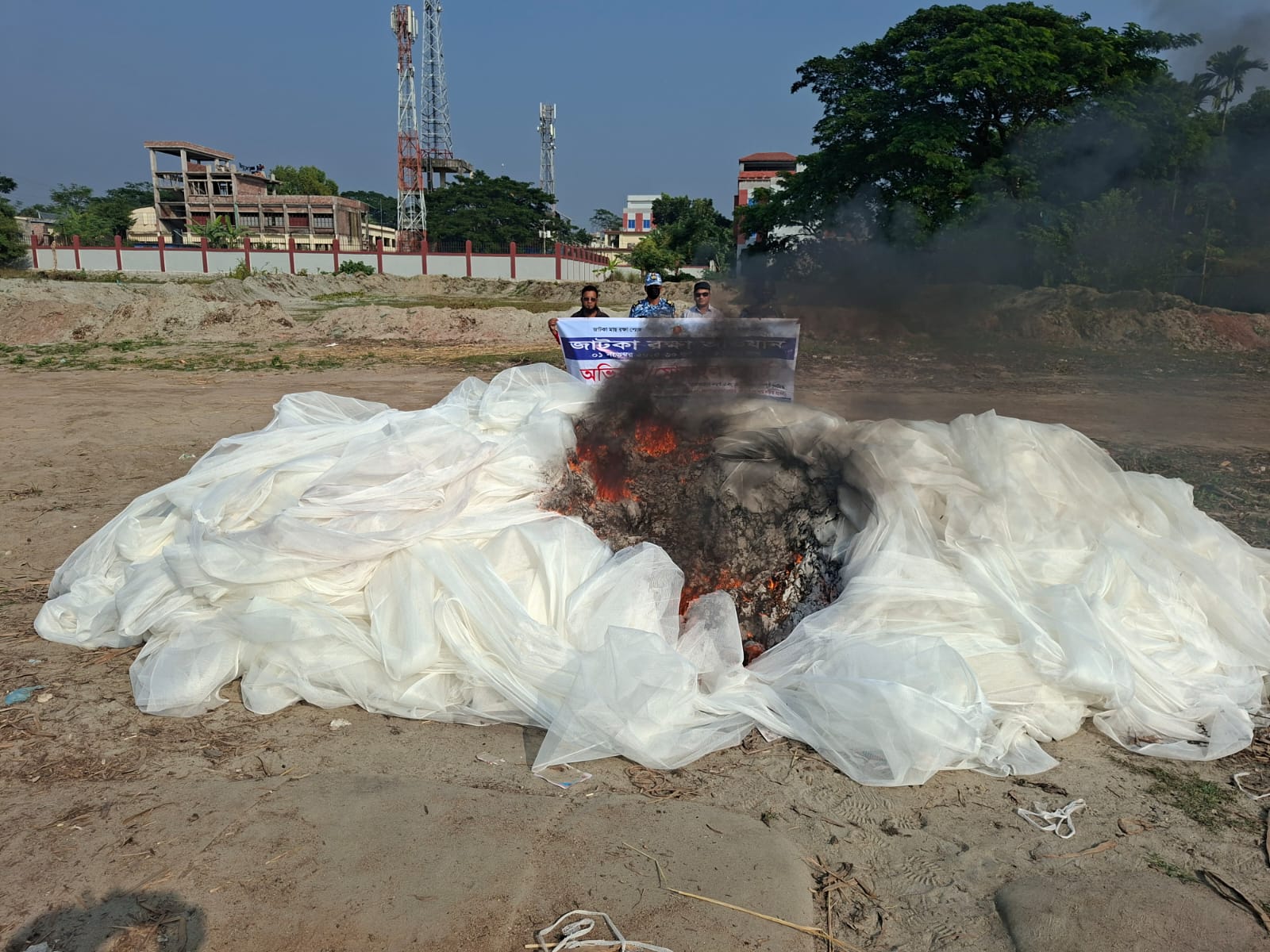 মতলব উত্তরে দুই লাখ মিটার অবৈধ মশারি জাল পুড়িয়ে ধ্বংস