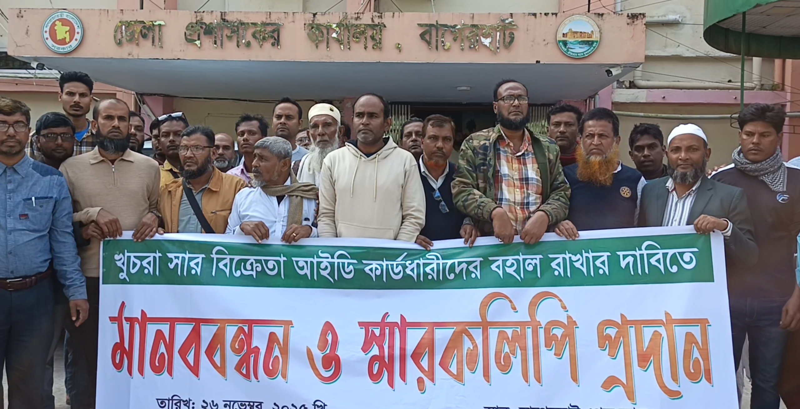 বাগেরহাটে খুচরা সার বিক্রেতাদের লাইসেন্স বাতিলের সিদ্ধান্ত প্রত্যাহার দাবিতে মানববন্ধন ও স্মারকলিপি প্রদান