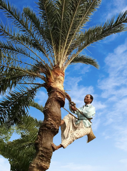 রাজবাড়ীতে খেজুর গাছ পরিচর্যায় ব্যস্ত গাছিরা