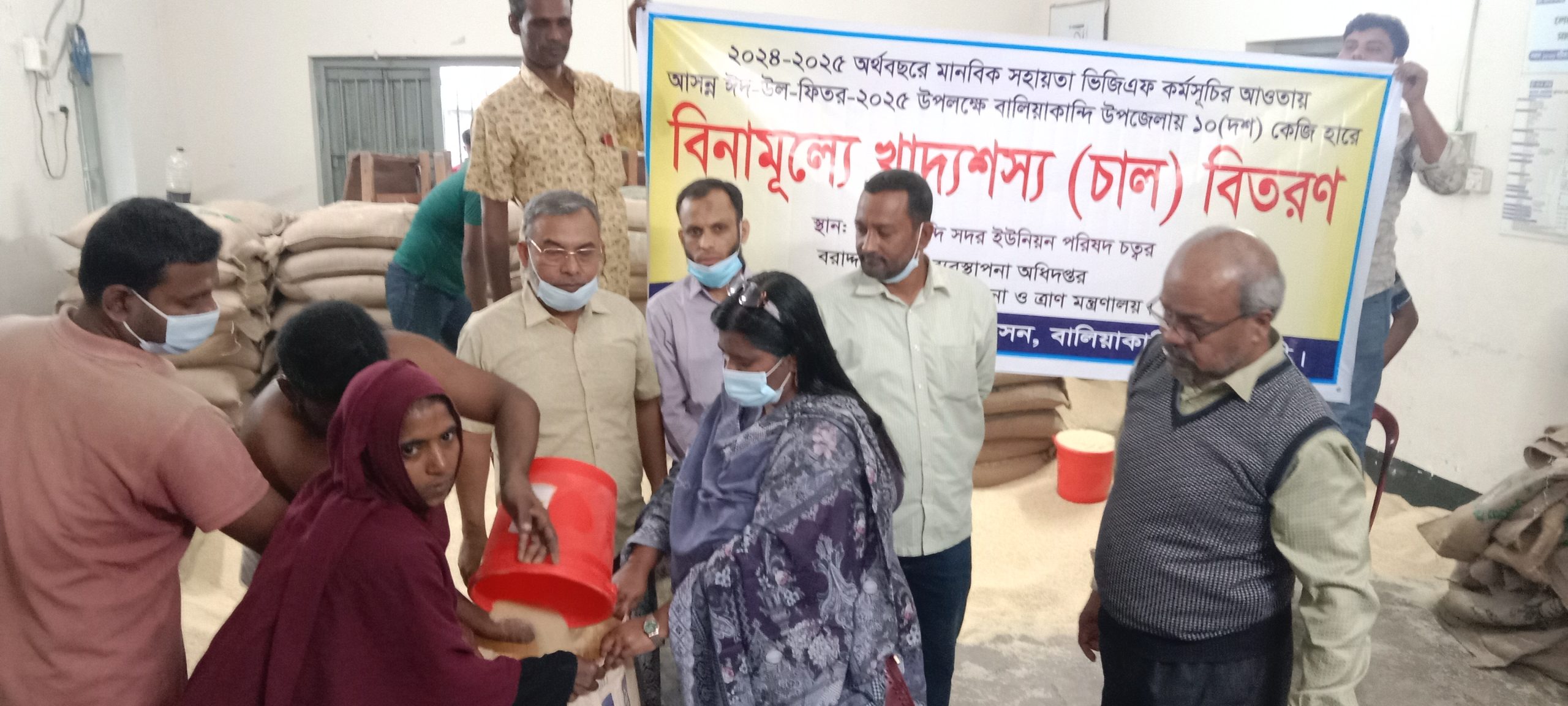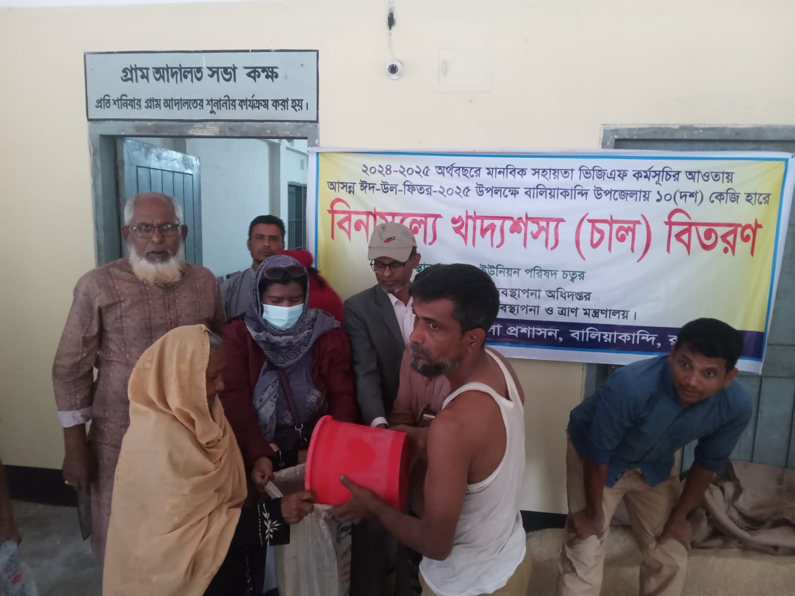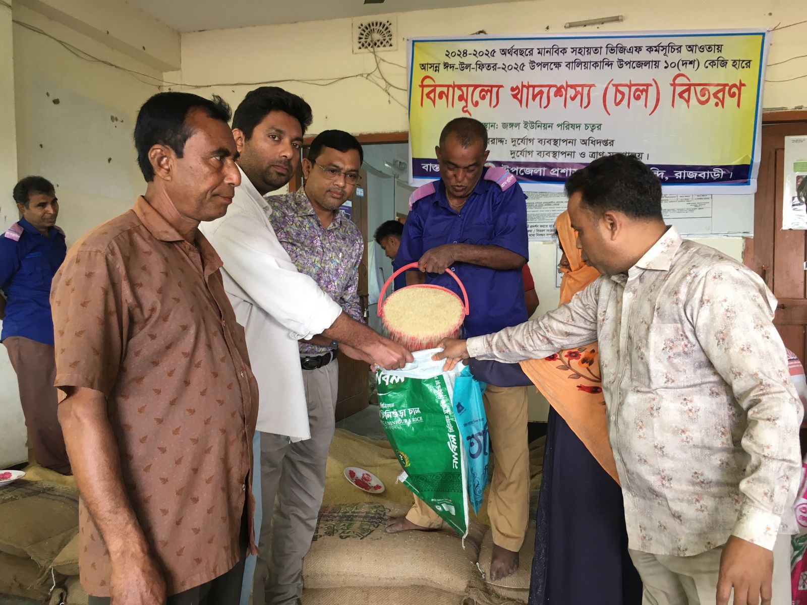 মেহেদী হাসান, রাজবাড়ী প্রতিনিধি।। রাজবাড়ী বালিয়াকান্দি উপজেলার জঙ্গল ইউনিয়নে ২০২৪-২০২৫ অর্থবছরে মানবিক সহায়তা ভিজিএফ কর্মসূচির আওতায় আসন্ন ঈদুল ফিতর উপলক্ষে