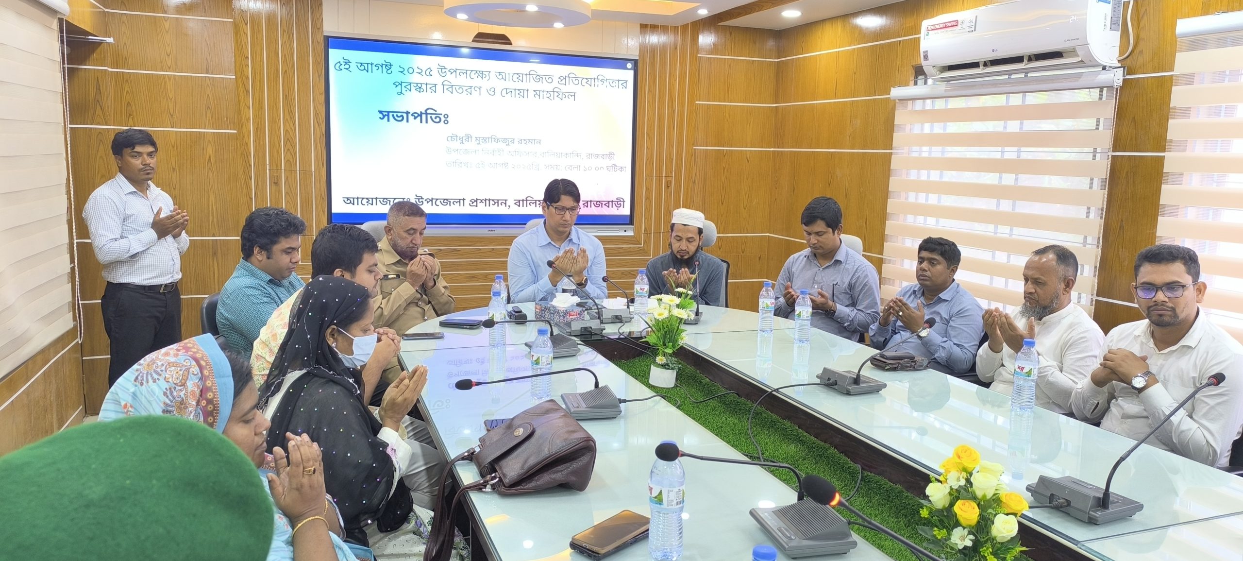 বালিয়াকান্দিতে ৫ আগষ্ট উপলক্ষ্যে প্রতিযোগিতা পুরস্কার বিতরণ ও দোয়া মাহফিল