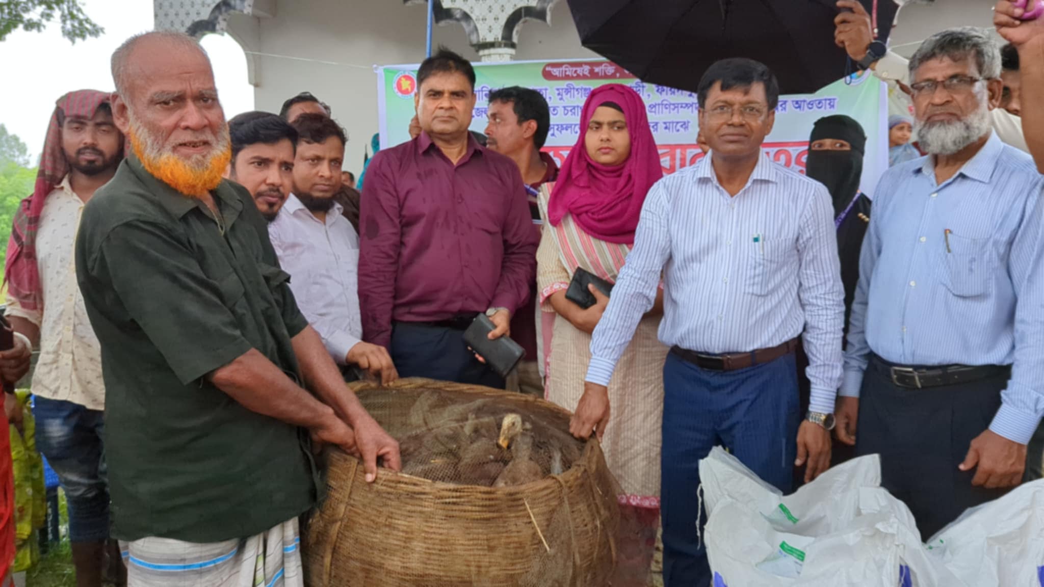 রাজবাড়ীতে ১১৩ জন সুফলভোগী খামারীদের মাঝে বিনামূল্যে হাঁস ও হাঁসের খাবার বিতরণ