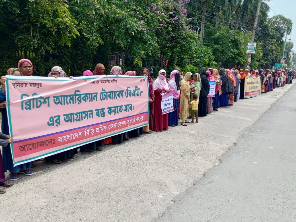 চার দফা দাবিতে রংপুরে বিড়ি শ্রমিকদের মানববন্ধন ও স্মারকলিপি প্রদান