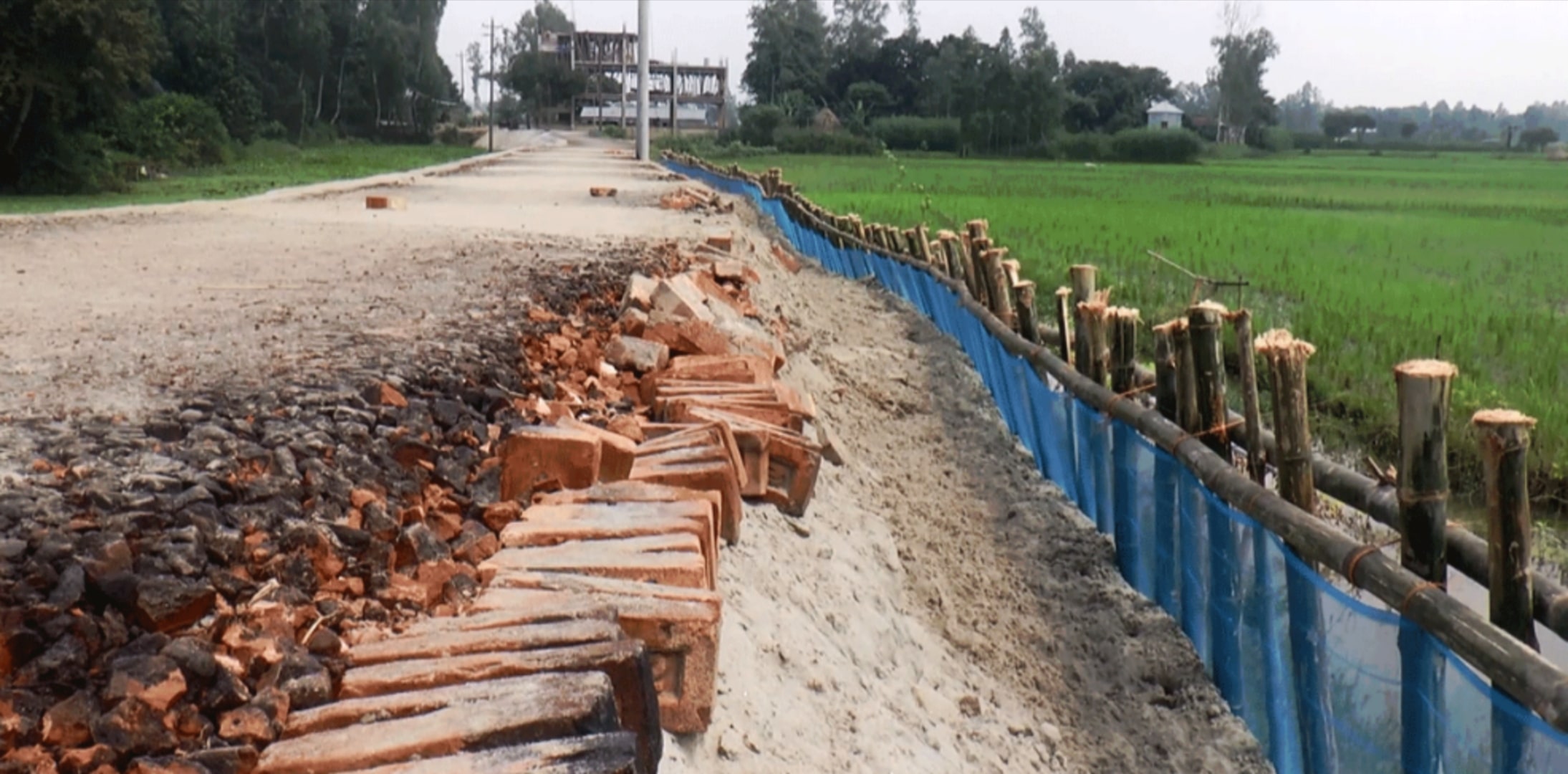 শাহজাদপুরে সড়ক নির্মাণে রডের বদলে বাঁশ