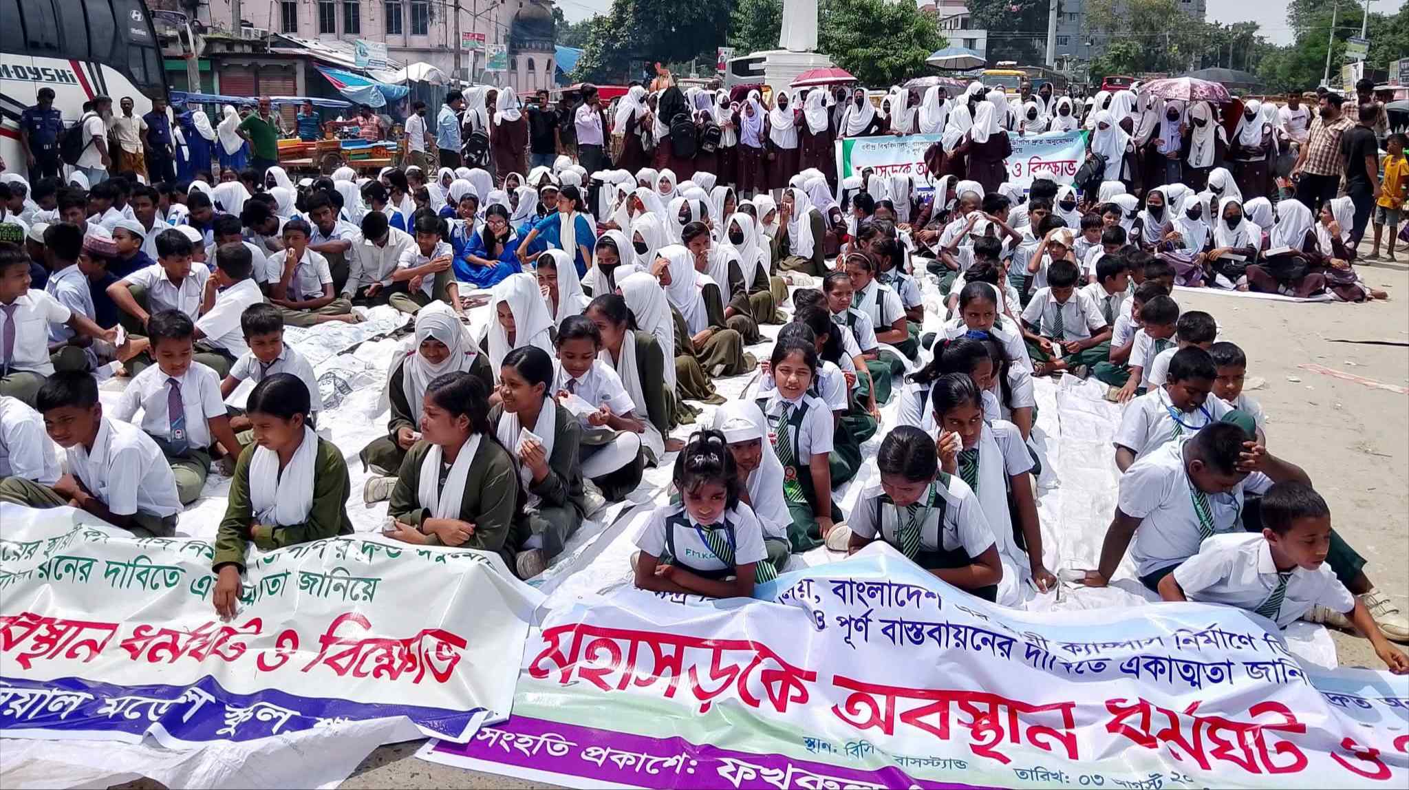 রবীন্দ্র বিশ্ববিদ্যালয়ের স্থায়ী ক্যাম্পাস দাবিতে মহাসড়ক অবরোধে শিক্ষার্থী-জনতা