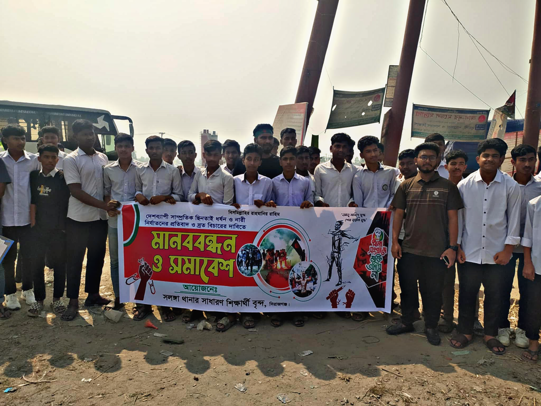 দেশব্যাপী ছিনতাই, ধর্ষণের প্রতিবাদে সলঙ্গায় মানববন্ধন অনুষ্ঠিত