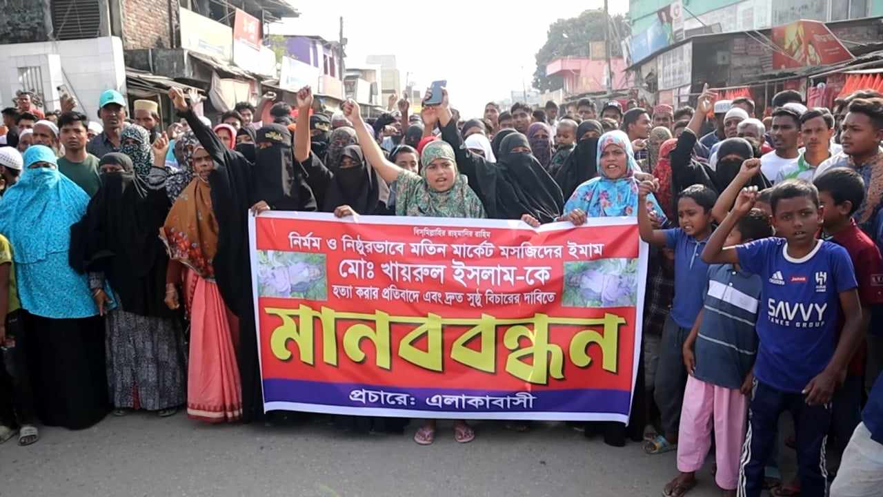 রাণীশংকৈলে মসজিদের ইমাম হত্যার প্রতিবাদে এলাকাবাসীর বিক্ষোভ ও মনববন্ধন