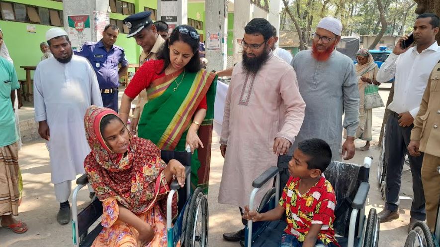 প্রতিবন্ধী ব্যক্তিদের মাঝে হুইল চেয়ার ও ত্রুাচ বিতরণ