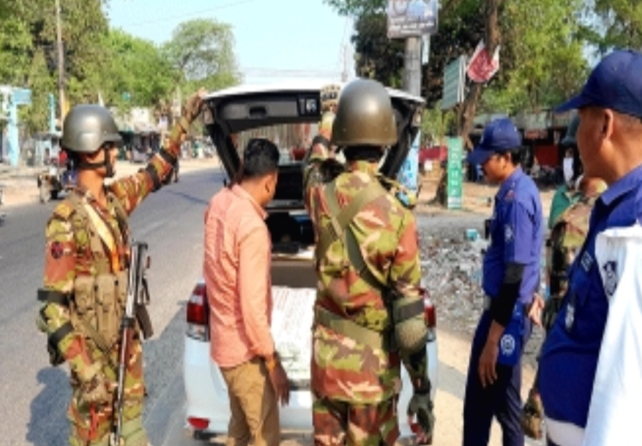 ঠাকুরগাঁও সদরে চেকপোস্ট বসিয়ে যৌথবাহিনীর অভিযান-তল্লাশি