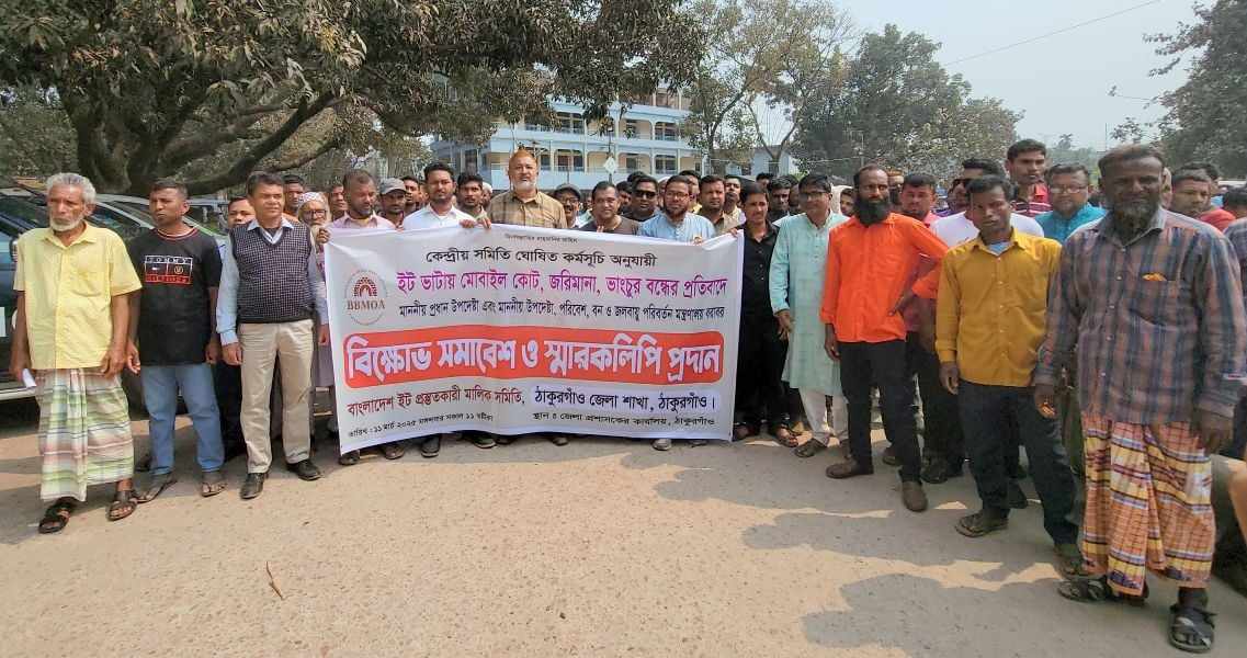 ঠাকুরগাঁওয়ে ৭দফা দাবিতে ইটভাটা মালিকদের বিক্ষোভ