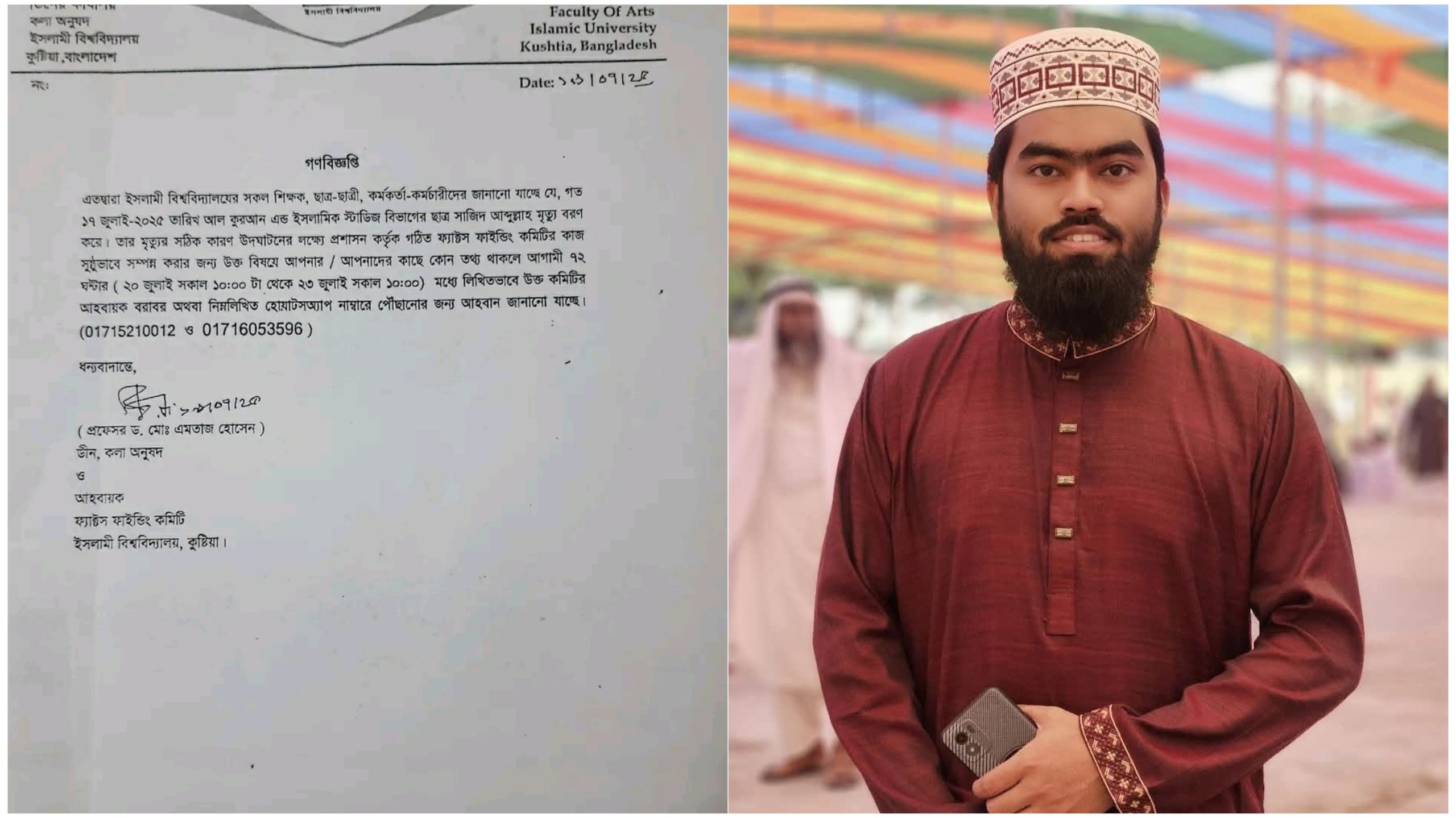 ইবি শিক্ষার্থী সাজিদের রহস্যজনক মৃত্যু; তথ্য চেয়ে গণবিজ্ঞপ্তি