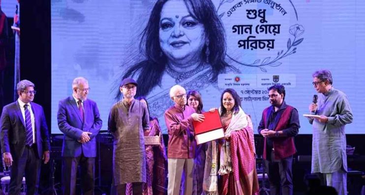 বরেণ্য সংগীতশিল্পী সাবিনা ইয়াসমিনকে রাষ্ট্রীয় সম্মাননা দেওয়া হয়েছে। রোববার (৭ সেপ্টেম্বর) সন্ধ্যায় সংস্কৃতিবিষয়ক মন্ত্রণালয়ের আয়োজনে ও বাংলাদেশ শিল্পকলা একাডেমির ব্যবস্থাপনায় জাতীয়